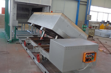 ????d、臺(tái)車傾斜、臺(tái)車進(jìn)出、爐門升降均為電動(dòng)控制,且設(shè)有連鎖保護(hù)裝置,可防止因誤操作而產(chǎn)生的故障和事故